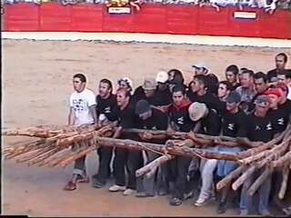 Praça de toiros de Aldeia da Ponte, dia 16 de agosto 2003, festival « Oh Forcão Rapazes » entre as Aldeias da Raia...