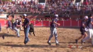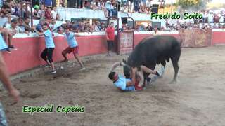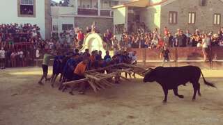 Recorte de toiro em slow motion durante a capeia arraiana dos Foios 2018.