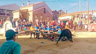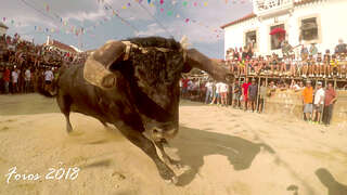 Capeia Arraiana do Soito, día 7 de agosto de 2018. Toiro parte o forcão. Ganaderia José Manuel Duarte (Fininho).