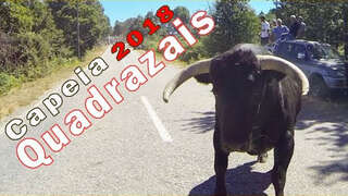 Capeia de Quadrazais, dia 29 julho 2018. Durante o encerro, um toiro da ganaderia Zé Noi (Forcalhos) se escapa.