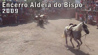 Encerro e toiro da prova da capeia arraiana de Aldeia do Bispo, día 10 de Agosto 2009. Dois cavalos sozinhos entram na...