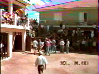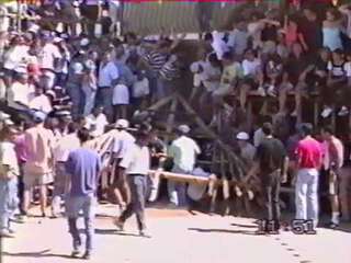 Encerro dos Forcalhos com a ganaderia Zé Noi, dia 18 agosto 2003. Queda de um cavalo na entrada.